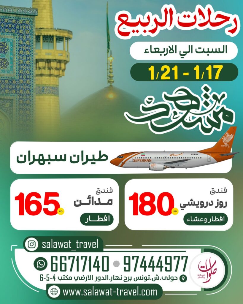 صلوات للسفر والسياحة تقدم أفضل برامج الزيارات الدينية والترفيهية إلى مشهد والعراق.